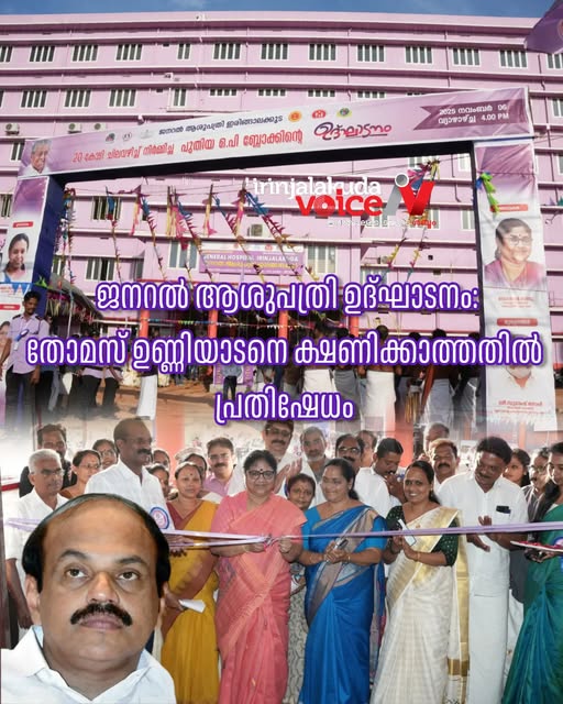 ഇരിഞ്ഞാലക്കുട:ജനറൽ ആശുപത്രിയുടെ ഉദ്‌ഘാടന ചടങ്ങിലേക്ക് മുൻ എം എൽ എ തോമസ് ഉണ്ണിയാടനെ ക്ഷണിക്കാത്തതിൽ പ്രതിഷേധിച്ച് കേരള കോൺഗ്രസ് ജനപ്രതിനിധികളും പ്രവർത്തകരും ചടങ്ങ് ബഹിഷ്‌കരിച്ചു.താലൂക്ക് ആശുപത്രിയായിരുന്ന ഈ ആശുപത്രിയെ ജനറൽ ആശുപത്രിയാക്കി ഉയർത്തിയതും നൂറോളം തസ്തികകൾ സൃഷ്ട്ച്ച് അനുമതി വാങ്ങിയതും കെട്ടിട നിർമാണത്തിനാവശ്യമായ 20 കോടി രൂപ അനുവദിച്ചതും തോമസ് ഉണ്ണിയാടൻ എം എൽ എയുടെ അശ്രാന്ത പരിശ്രമത്തിന്റെ ഫലമായാണെന്നും ഇത് സംബന്ധിച്ച് ചേർന്ന പ്രതിഷേധ യോഗം ചൂണ്ടിക്കാട്ടി. മെഡിക്കൽ കോളജിനു തൊട്ടടുത്ത സ്ഥാനമുള്ള ജനറൽ ആശുപത്രി ലഭിക്കുന്നതിന് ജില്ലയിലെ മറ്റു നിയോജക മണ്ഡലങ്ങൾ പരിശ്രമിച്ചിട്ടും ഉണ്ണിയാടന്റെ കഠിന പ്രയത്‌നത്തിന്റെ ഫലമായാണ് 2013 ലെ ഉമ്മൻ‌ചാണ്ടി സർക്കാർ ബജറ്റിലൂടെ ഇരിങ്ങാലക്കുടക്ക് ജനറൽ ആശുപത്രി അനുവദിച്ചത്.( ഉത്തരവ് നമ്പർ: 3823/2013/-16-11-2013) തുടർന്ന് ഉണ്ണിയാടന്റെ കാലഘട്ടത്തിൽ തന്നെ അഞ്ചു നിലകളുള്ള കെട്ടിടത്തന്റെ ആദ്യ മൂന്നു നിലകളുടെ നിർമ്മാണം ആരഭിച്ചിരുന്നതുമാണ്.