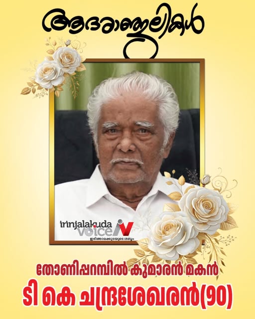 ഇരിങ്ങാലക്കുട, പൊറത്തിശ്ശേരി തോണി പറമ്പിൽ കുമാരൻ മകൻ ചന്ദ്രശേഖരൻ (90)അന്തരിച്ചു. പൊതു മരാമത്ത് വകുപ്പിൽ ഉദ്യോഗസ്ഥനായിരുന്നു.