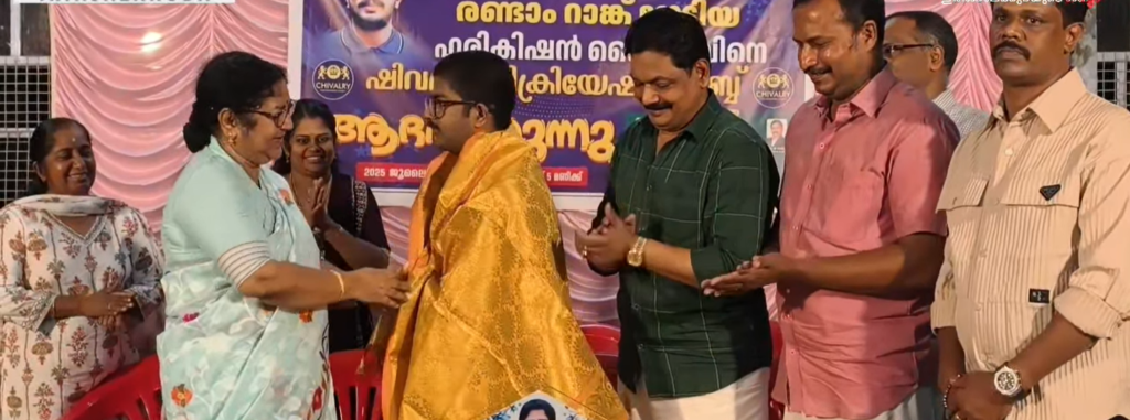 കേരള എഞ്ചിനിയറിംങ്ങ് പ്രവേശന പരീക്ഷയിൽ രണ്ടാം റാങ്ക് നേടിയ ഇരിങ്ങാലക്കുട സ്വദേശി ഹരി കിഷൻ ബൈജുവിന് ഷിവൽറി റിക്രിയേഷൻ ക്ലബ്ബിൻ്റെ നേതൃത്വത്തിൽ ആദരവ് സമർപ്പിച്ചു
