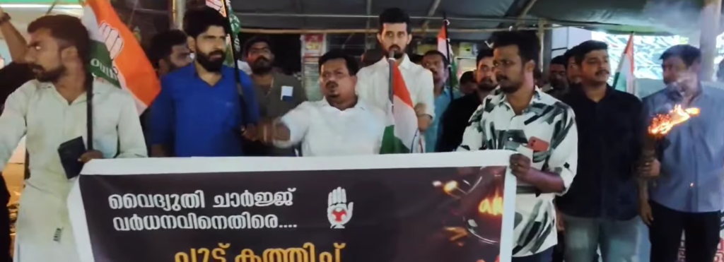 വൈദ്യുതി നിരക്ക് വർധനവിൽ പ്രതിഷേധിച്ച് ഇരിങ്ങാലക്കുടയിൽ യൂത്ത് കോൺഗ്രസ് പ്രവർത്തകൾ ചൂട്ട് കത്തിച്ചുള്ള പ്രതിഷേധം നടത്തി