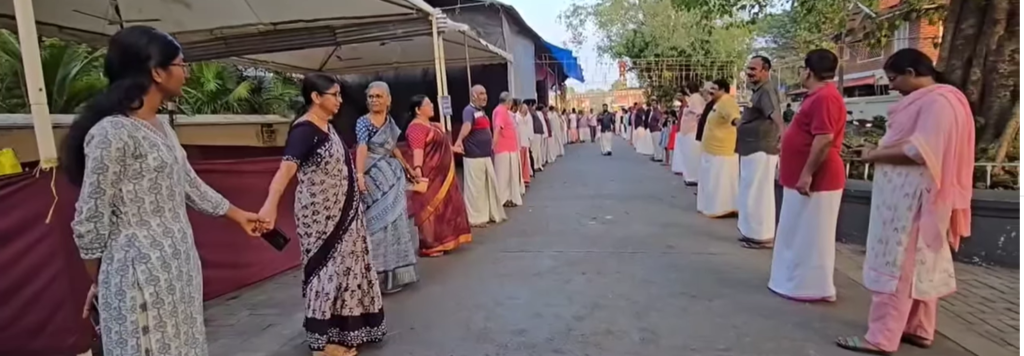 ഉത്സവങ്ങൾക്ക് ആന എഴുന്നള്ളിപ്പിൽ നിയന്ത്രണം ഏർപെടുത്തിയ കോടതി നടപടികളിൽ പ്രതിഷേധവുമായി കൂടൽമാണിക്യം സായഹ്ന കൂട്ടയ്മ്മ മനുഷ്യ ചങ്ങല തീർത്തു.