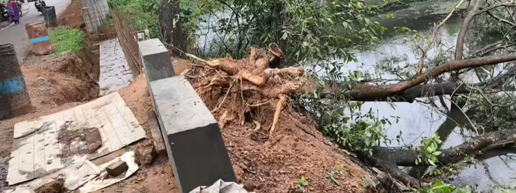 കരുവന്നൂർ പുത്തത്തോട് കെ എൽ ഡി സി കനാൽ ബണ്ട് നിർമ്മാണം നടക്കുന്നിടത്തെ മരം കടപുഴകി കനാലിലേയ്ക്ക് വീണു
