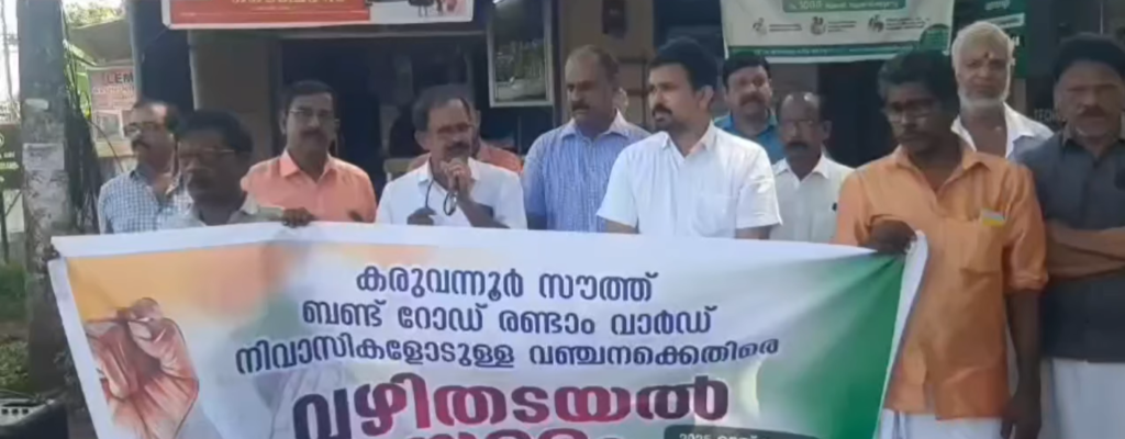 കരുവന്നൂർ സൗത്ത് ബണ്ട് റോഡിൻ്റെ പുനരുദ്ധാരണ പ്രവർത്തനങ്ങൾ പാതി വഴിയിൽ നിലച്ചതിൽ പ്രതിഷേധിച്ച് കോൺഗ്രസ്സ് കമ്മിറ്റിയുടെ നേതൃത്വത്തിൽ വഴി തടയൽ സമരം നടത്തി