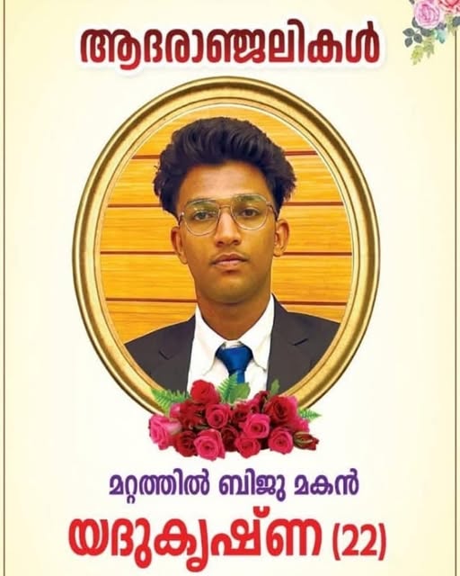 ആളൂർ ആനത്തടം മറ്റത്തിൽ ബിജു മകൻ യദുകൃഷ്ണ നിര്യതനായി. ടെറസ്സിൽ നിന്നും കാൽവഴുതി വീണതിനെ തുടർന്ന് ഹോസ്പിറ്റലിൽ കൊണ്ട് പോയെങ്കിലും രക്ഷിക്കാൻ കഴിഞ്ഞില്ല.