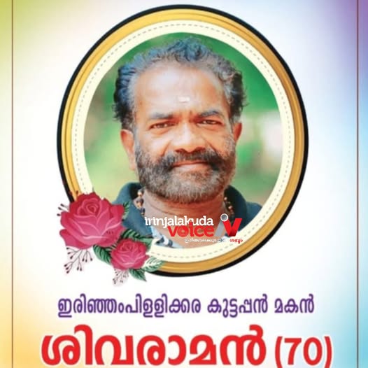 ആനന്ദപുരം ഇരിങ്ങാപിള്ളിക്കര ശിവരാമൻ സെക്യൂരിറ്റി ജോലിക്കിടെ കുഴഞ്ഞ് വീണു ഉടനെ ആശുപത്രിയിലെത്തിച്ചുവെങ്കിലും മരണമടഞ്ഞു വൈലൂർ അമ്പലത്തിലെ സെക്യൂരിറ്റിയായിരുന്നു ഭാര്യ തങ്ക മക്കൾ ബിന്ദു, മണികണ്ഠൻ അഭിലാഷ് മരുമക്കൾ ഉണ്ണികൃഷ്ണൻ, ധനിസ സംസ്കാരം ബുധൻ രാവിലെ പൂമംഗലം ശാന്തിതീരത്ത്