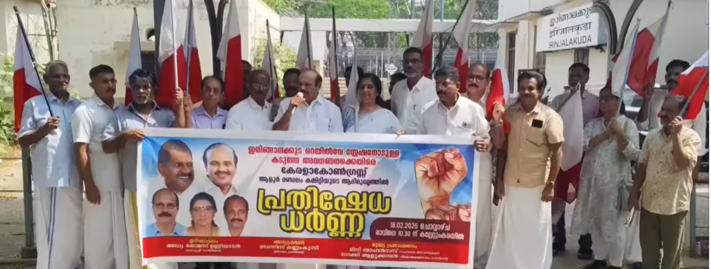 കല്ലേറ്റുംകരയിലുള്ള ഇരിങ്ങാലക്കുട റെയിൽവേ സ്റ്റേഷനോട് ഉള്ള അവഗണനക്കെതിരെ കേരള കോൺഗ്രസ് ആളൂർ മണ്ഡലം കമ്മിറ്റി റെയിൽവേ സ്റ്റേഷന് മുന്നിൽ പ്രതിഷേധ ധർണ നടത്തി