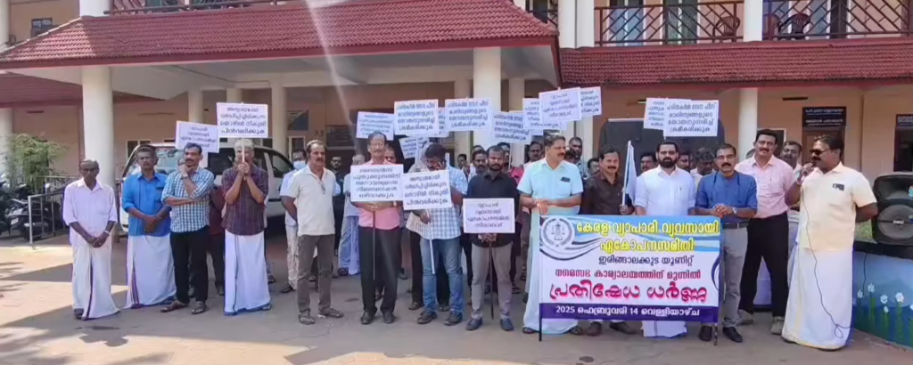വിവിധ ആവശ്യങ്ങള് ഉന്നയിച്ച് കൊണ്ട് കേരള വ്യാപാരി വ്യവസായി ഏകോപന സമിതിയുടെ നേതൃത്വത്തില് ഇരിങ്ങാലക്കുട നഗരസഭ കാര്യാലയത്തിന് മുന്നില് പ്രതിഷേധ ധര്ണ്ണ നടത്തി